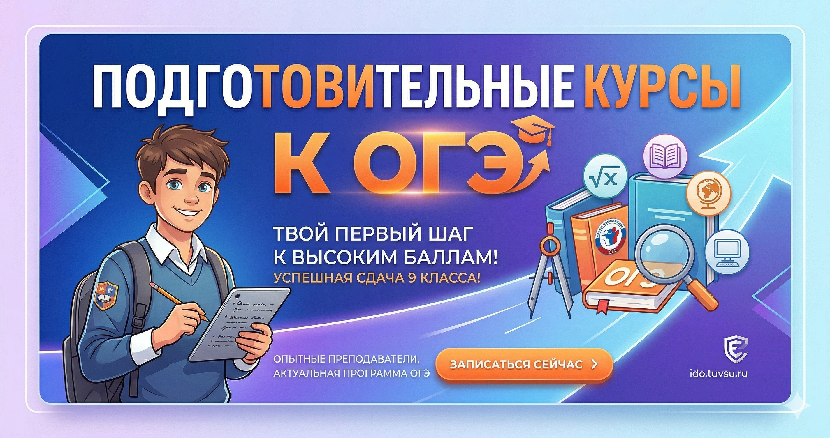 Первая серьезная проверка знаний уже близко. Не паникуй — готовься с экспертами ИДО ТувГУ! Мы поможем закрыть пробелы в школьной программе, разберем ловушки экзамена и научим решать задания КИМ быстро и правильно. Твой аттестат скажет тебе «спасибо»!